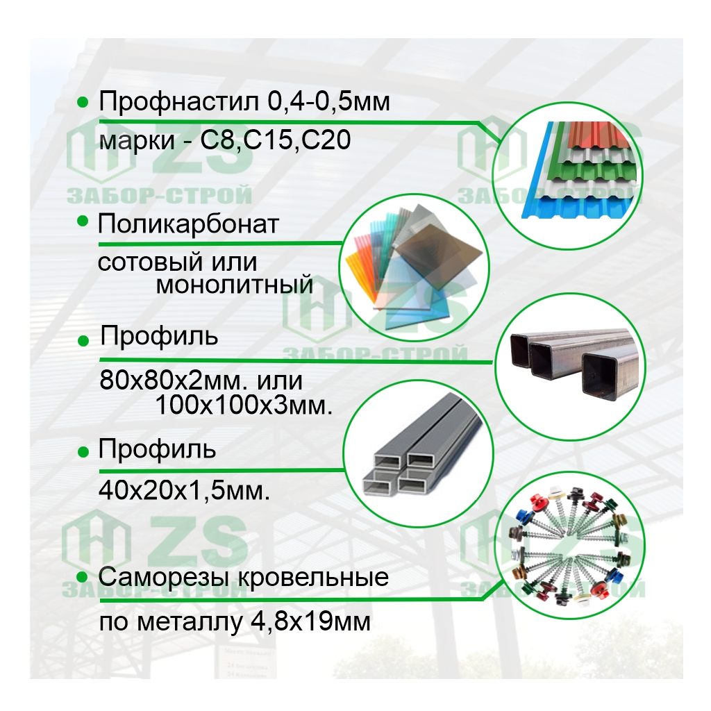 Стандартные характеристики каркаса навеса: столбы 80х80х3мм.