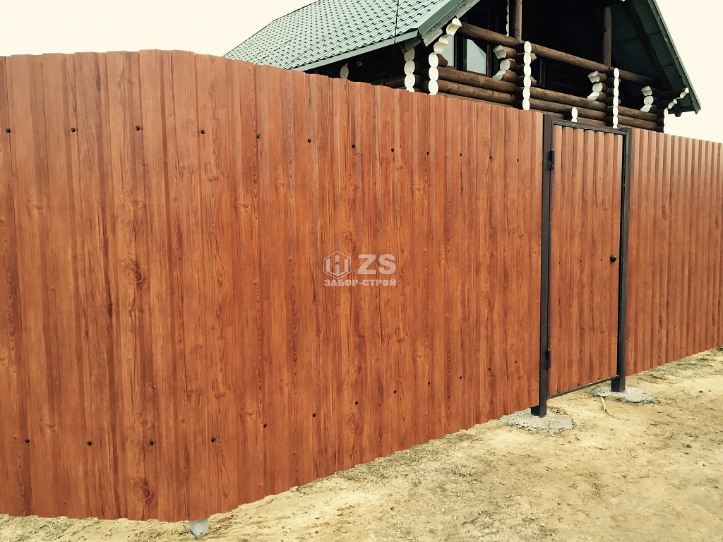 - Забор из профнастила под дерево 55 метров