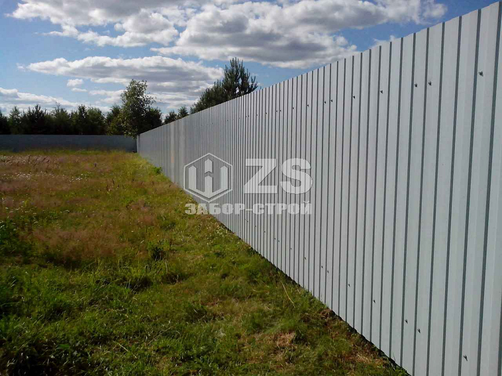 - Забор на столбах с утрамбовкой щебня из профнастила 40 метров