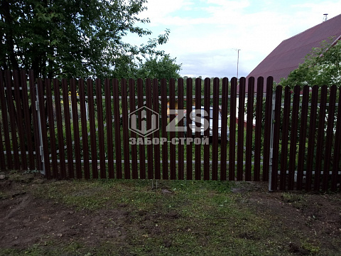 - Забор на забивных столбах из евроштакетника 25 метров