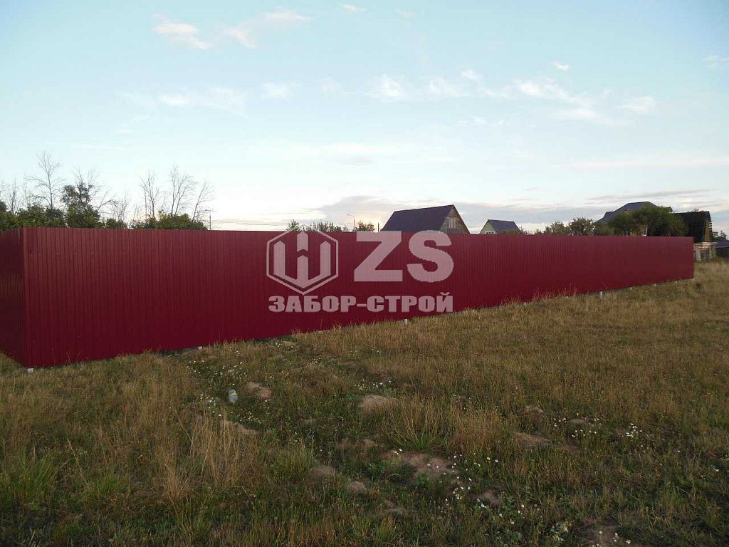 - Забор на забивных столбах из профнастила 50 метров