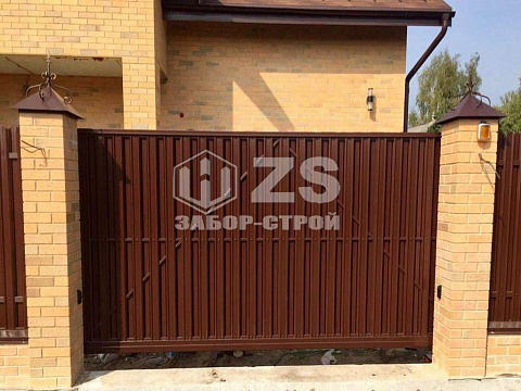 - Забор с кирпичными столбами из евроштакетника 20 метров